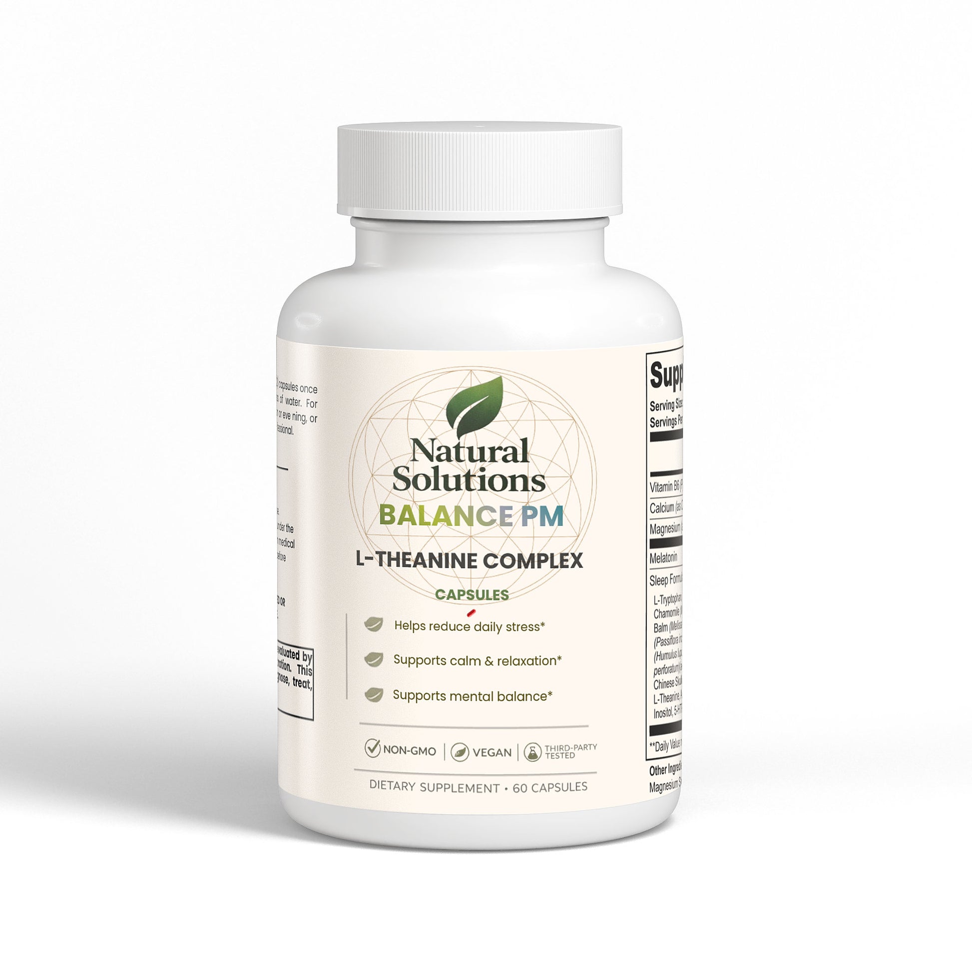 Balance PM is an evening wellness supplement formulated with L-Theanine.